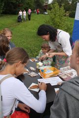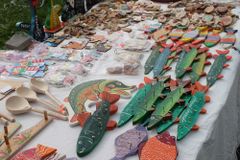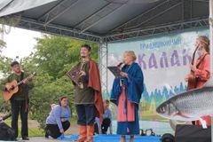 Зона рыбного праздника охватывала большую территорию – всю пойму реки Лососинки. Чтобы ее обойти, побывать на всех площадках, поучаствовать во всех конкурсах и интерактивных программах, требовался не один час. Карельские мастера заняли весь левый берег ремесленной ярмаркой, Центр туризма устроил настоящий квест по сбору туристического снаряжения, карельский Дед Мороз Талви Укко приглашал посетить саамские чумы, сфотографироваться с северным оленем и добродушными собаками хаски. Сотрудники Музея изобразительных искусств проводили мастер-классы для юных художников. А их коллеги из Национальной библиотеки приглашали книгочеев познакомиться с книжными новинками и отдохнуть в тени библиомобиля «КИБО». На сцене сменяли друг друга любительские творческие коллективы республики: Карельский народный хор «Oma pajo», фольклорно-этнографический ансамбль «Karjala», детский театр народной песни «Карусель», студия эстрадного танца «Апельсиновая фиеста», вокальные студии «Поколение» и «Гармония», гитаристы Юрий Жук и Алина Репецкая и другие. Буря аплодисментов обрушилась на вокальную группу «Винтаж» из Шокши, покорившую зрителей своим душевным исполнением.