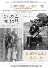 Выставка «Дыхание звука. Традиционные музыкальные инструменты финно-угорского мира» работает с 27 сентября по 29 октября 2018 года в Доме ремесел (Петрозаводск, ул. Кирова 13) с 11:00 до 19:00, выходной день – воскресенье. Каждый четверг с 17.00 до 19.00 в Выставочном зале Дома ремесел будут проходить мастер-классы «Дудочка своими руками. Делаем – играем». 20 октября в Доме ремесел состоится творческая встреча с Дмитрием Деминым.