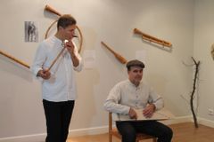 На вернисаже состоится выступление солистов фолк-группы «Sattuma» Арто Ринне и Дмитрия Демина, студентов Петрозаводской государственной консерватории имени А.К. Глазунова.