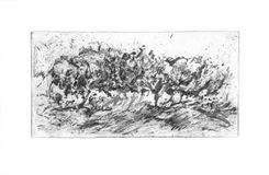 "Перед нами развёрнут процесс постепенного сложения образа гранатового сада. Развёрнут в последовательно выстроенной серии графических листов, в которой каждый офортный оттиск отличается от предыдущего одной добавленной изобразительной деталью – «знаком, буквой». По мере нарастания присутствия проявления искомого образа считываемость букв-деталей (слагаемых текста) уменьшается. Когда изображение становится максимально графически насыщенным, а образ достигает чаемой полноты, предмет проваливается в черноту непознаваемости", - дал комментарий о выставке художник Артем Стародубцев.