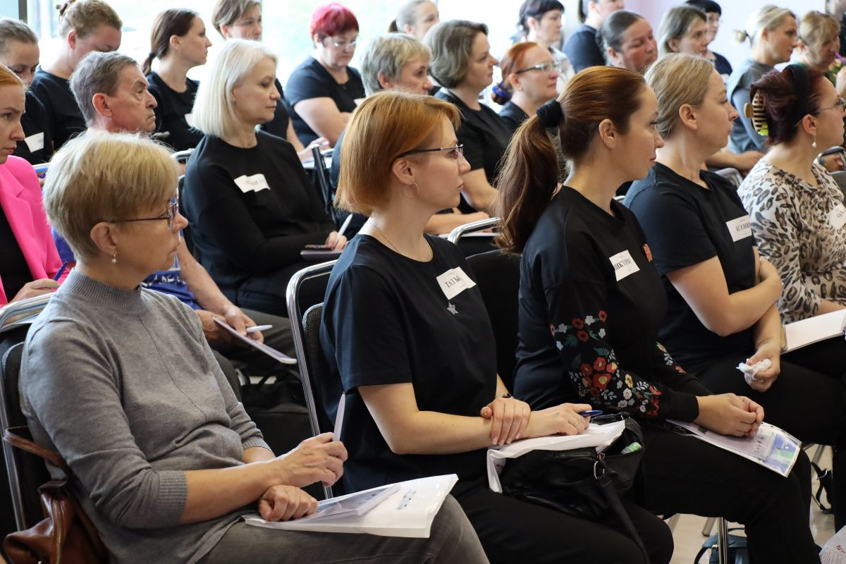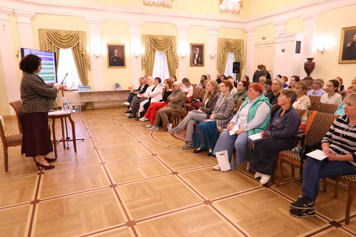 После обеда эстафету приняла Лариса Алексеева, художественный руководитель заслуженного коллектива народного творчества хореографического ансамбля «Вензеля», заслуженный работник культуры РФ, лауреат премии «Душа России». Участники обсудили, как интерпретировать народные традиции в современных постановках, опираясь на примеры из репертуара ансамбля «Вензеля». Затем отработали хореографические навыки в рамках практического занятия по авторской «Школе русского танца».