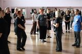 В первой половине дня участники погрузились в мир традиционной хореографии под руководством Елены Смирновой, основателя Центра фольклорного танца «Карусель», заслуженного работника культуры РФ, лауреата премии «Душа России». Она начала с рассказа о живой традиции русского народного танца на примере опыта работы со своим коллективом, а потом перешла к практике: участники разбирали, как обрабатывать фольклорный материал на начальном этапе.