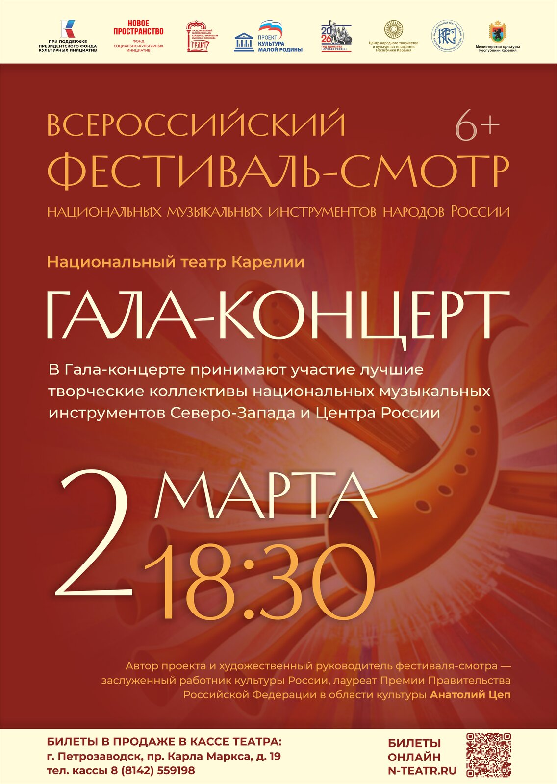 2 марта 2026 года в Национальном театре Республики Карелия состоятся центральные события фестиваля-смотра национальных музыкальных инструментов народов России: творческая лаборатория, пресс-конференция и гала-концерт участников.