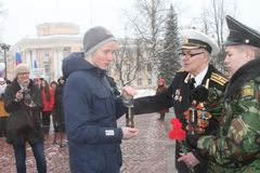 Сегодня в Петрозаводске стартовал фестиваль «Эстафета поколений – эстафета памяти». Лампадки с частицами Вечного огня из Петрозаводска разъехались по всей республике. Вот как это было.
