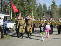 В завершении участники акции торжественным строем прошли по поселку и возложили цветочную гирлянду к памятнику героям Великой Отечественной.
