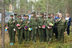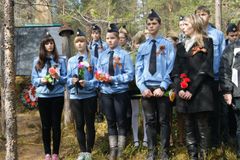 В 11.30 состоялся отъезд к Братской Могиле в деревне Колвасозеро, находящейся в 15 км от села Реболы. Военно-патриотический слёт начался с Митинга Памяти на Братской Могиле. Звучали стихи и песни в память о погибших солдатах. Волнительным моментом стало обращение к Солдату, которое звучало под музыку Шумана «Грезы». После зажжения свечей и Минуты молчания состоялось возложение гирлянды славы и венков, сделанных ребятами ребольской школы. Учающиеся 6 класса с классным руководителем Т.А. Поттоевой возложили на Братскую Могилу красные звезды, на которых были написаны имена всех 108 захороненных солдат.